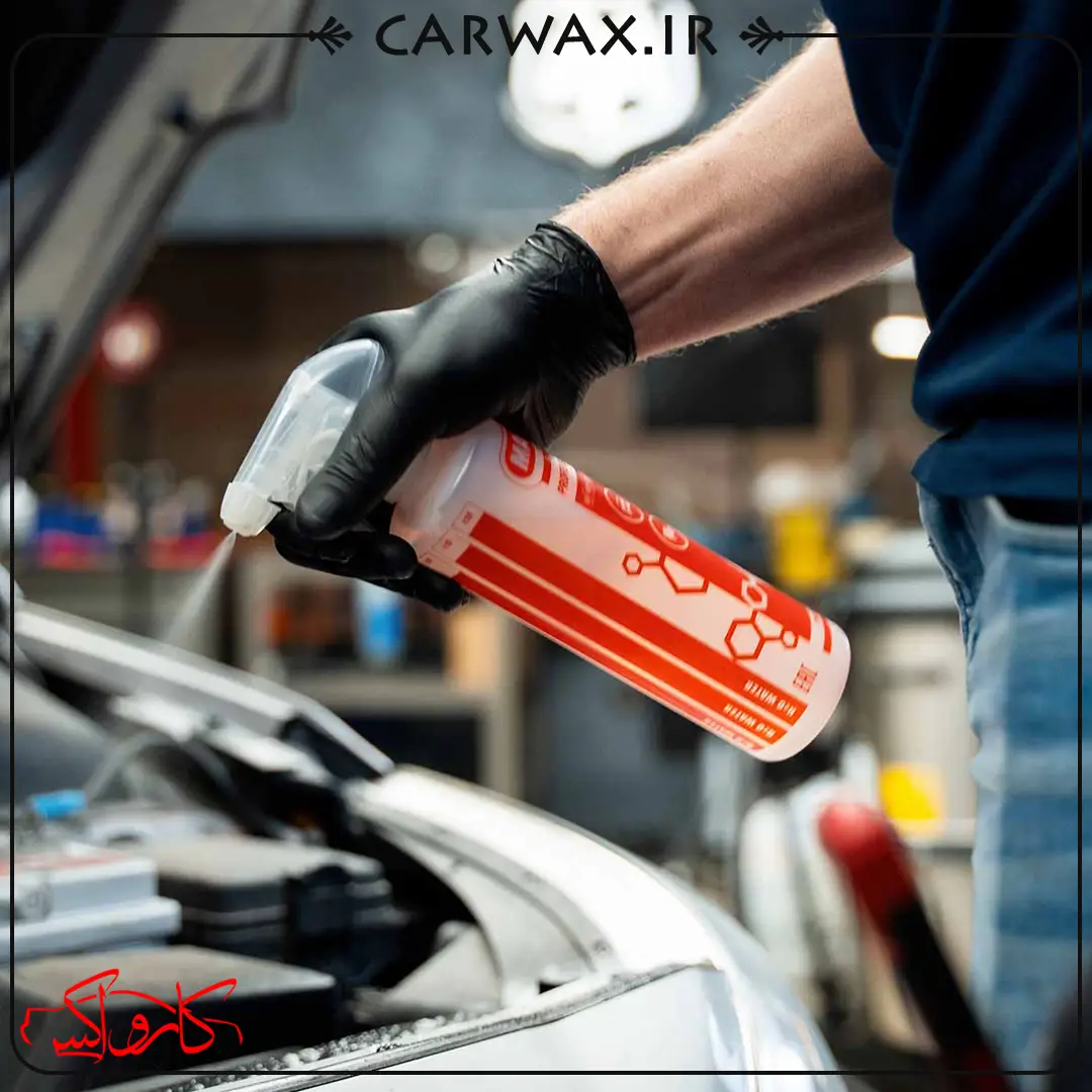 محلول را روی سطح اسپری کرده و با براش دیتیلینگ یا دستمال میکروفایبر مناسب تمیز کنید