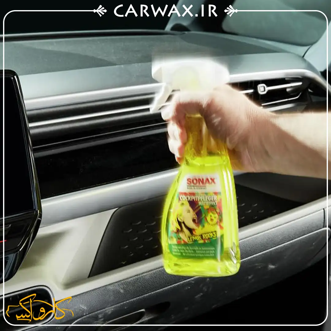 اسپری واکس و محافظ داشبورد نیم لیتری کاکپیت لیمو مات سوناکس Sonax Cockpit Lemon Rocks 500ml یک محصول حرفهای از برند معتبر آلمانی سوناکس است که برای تمیز کردن، براق کردن و محافظت از سطوح داخلی خودرو طراحی شده