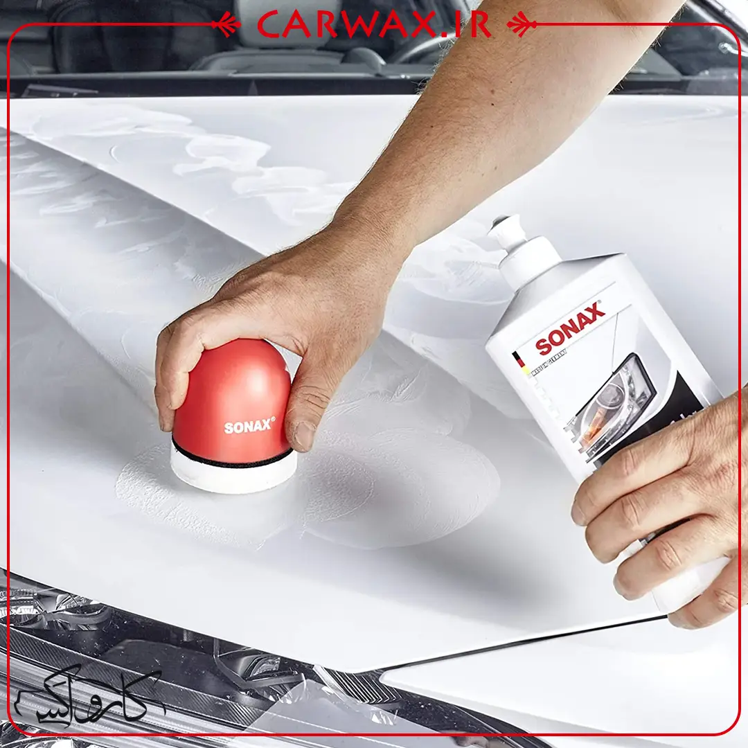 2. اجرا: محلول را با پد مخصوص سوناکس و فشار ملایم به صورت دایره‌ای روی بدنه ماساژ دهید.